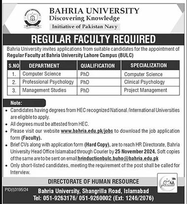 - Positive Work Environment: Working at Bahria University means being part of a dynamic and innovative academic community that values creativity, collaboration, and integrity.