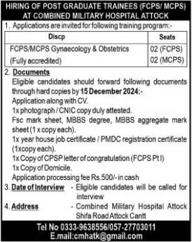 CMH Hospital Attock Post Graduate Trainee Program 2024