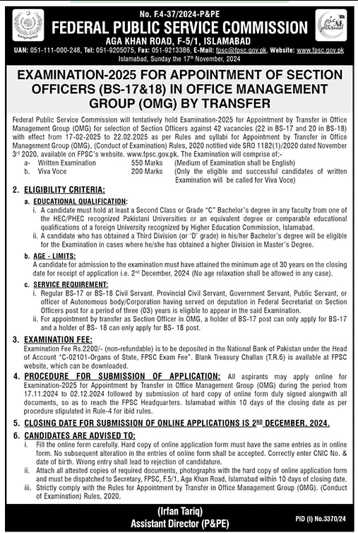 The Federal Public Service Commission (FPSC) is one of the most prestigious and respected organizations in Pakistan, tasked with recruiting qualified individuals for various civil service positions across federal departments and ministries. Every year, the FPSC opens applications for numerous roles, and one of the most sought-after positions is that of the Section Officer. The examination process for the Section Officer role in 2024 promises to be a crucial step for individuals aspiring to serve at the federal level and contribute to the development of the country.