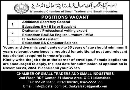 Islamabad Chamber of Small Traders ICSTSI Jobs 2024