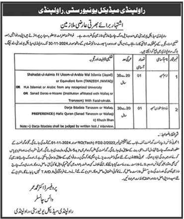Interested candidates can apply for job positions at Rawalpindi Medical University by visiting the university’s official website or checking job listings on government and healthcare job portals. Applicants should review the specific requirements for each position carefully and ensure they meet the qualifications before applying.