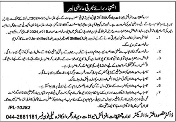 Livestock Production Research Institute Okara Jobs 2024