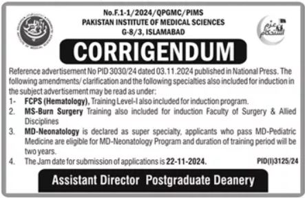 Pakistan Institute Of Medical Sciences Islamabad Job Notice 2024: Career Opportunities in Healthcare and Administration