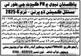 Only Pakistani citizens are eligible to apply for positions in the Pakistan Navy. Proof of citizenship (via CNIC) is required during the application process. - Experience: