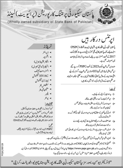 Pakistan Security Printing Corporation Apprenticeship 2025