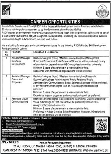 The Punjab Skill Development Fund (PSDF) offers a fantastic opportunity for professionals interested in education, training, and development to contribute to the growth of the workforce in Punjab. The various roles available in 2024 allow candidates to work in a dynamic, mission-driven environment, where their work will have a direct impact on improving employment prospects and economic prosperity in the region.