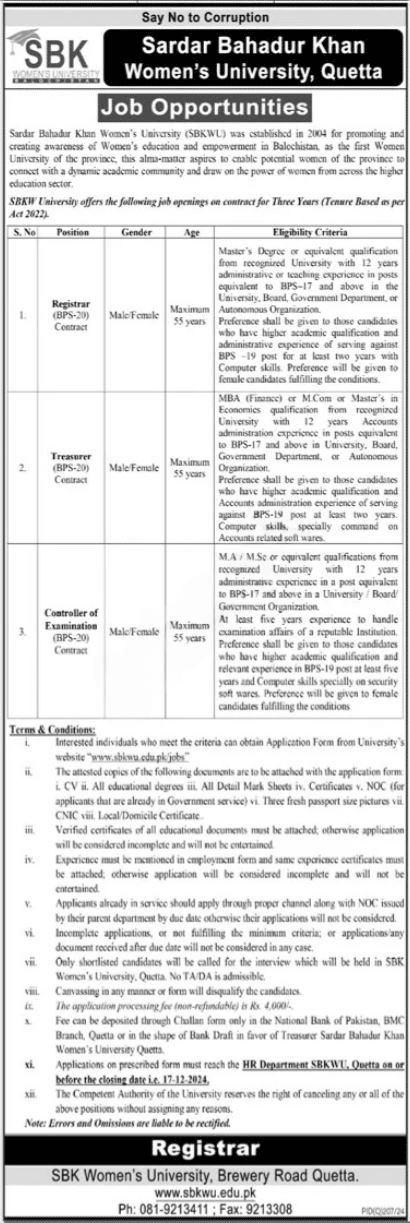 To apply for a job at Sardar Bahadur Khan Women University, candidates can visit the university’s official website or the local job portals where the vacancies are posted. Job advertisements typically include detailed instructions on the application process, required documents, and deadlines.