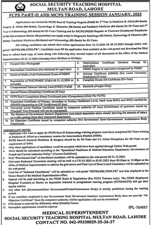 Interested candidates can apply through the official Social Security Teaching Hospital website, where they can find detailed instructions on the application process, program details, and deadlines. It is important to submit all required documents, such as educational certificates, identification, and proof of experience (if applicable), to be considered for selection.