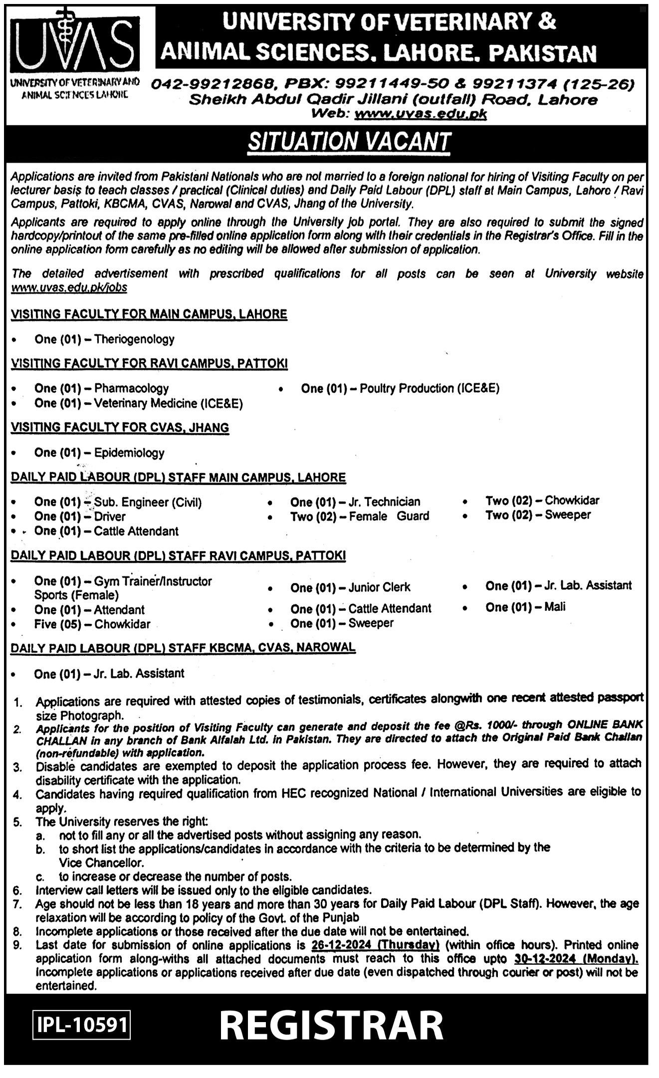 Make sure to check the official UVAS website for updates on job postings, deadlines, and any additional requirements for application.
